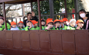 場所は、むさしの村です♪ピカチュウバスに乗車し出発です!