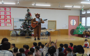 次はスペシャルゲスト✨園長先生がトナカイになってギターを演奏してくれました♬「赤鼻のトナカイ」「勇気100%」や「あんぱんまん」♬園児たちが大好きな曲です♪みんなで大きな声で歌って盛り上がりました🤗♬