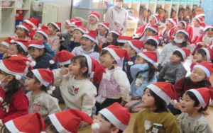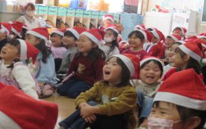 ちびっこサンタになって、朝からテンションMAXの子どもたち🎅
