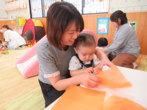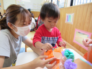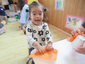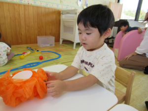 お花紙でカボチャのキャンディポットを作りました。