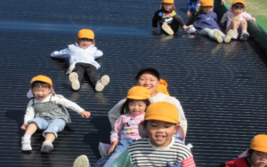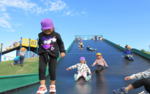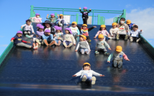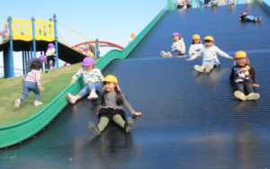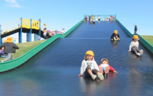 到着すると、巨大すべり台に目をキラキラさせて喜ぶ子どもたち♪