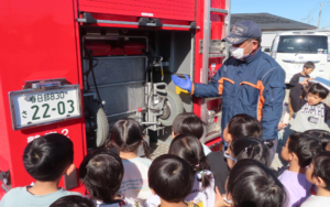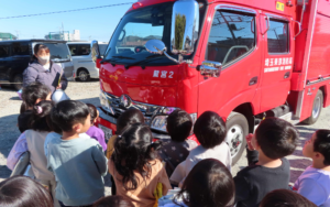 消防署の方から「おかしもち」のお話を聞きました✨園児のほとんどが「おかしもち」を答えれていましたよ😃お子様に聞いてみてくださいね😊