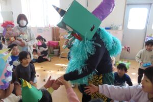 製作の発表をして、お歌をうたって、クイズをやっていると・・・・・・泣き虫鬼💦、いじわる鬼⚡、赤鬼👹がやってきましたーー😲