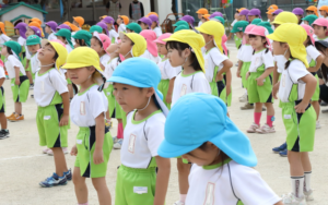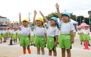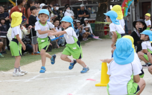初めての運動会を、楽しそうに取り組んでいた年少組さん。