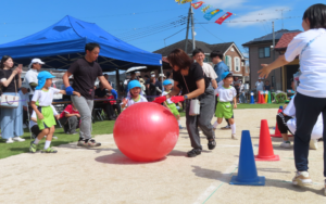 親子競技の大玉ころがしは、大好きなお家の方といっしょにできて、笑顔全開のつばさ組さんでした♬