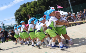 保育園での最後の運動会。4月から比べると、みんなとっても逞しく成長しました!大きな声で「ヤー!」とかけ声をだし、真剣な眼差しで行った組体操!とっても立派でしたね!日々の練習の成果をお家の方にも披露でき、笑顔がキラキラのつばさ組さんでした♪