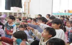 みんなの大好きな「やきいも🍠グーチーパー」と「ハッピーフレンズ」を元気よく歌いました。
