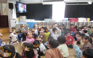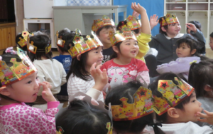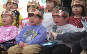 マイクで自己紹介をしたり、みんなで誕生日の歌をうたいました。