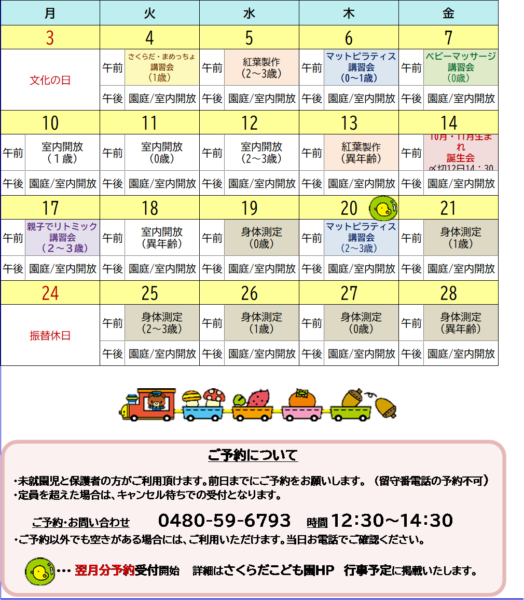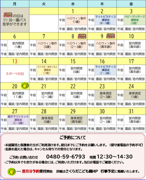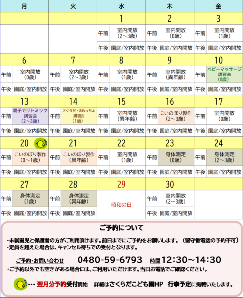 ♪「9:30~10:30」は当日参加者の自由遊びの時間です。