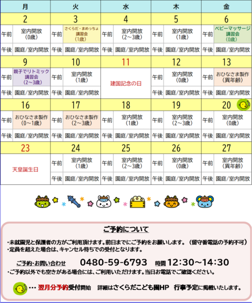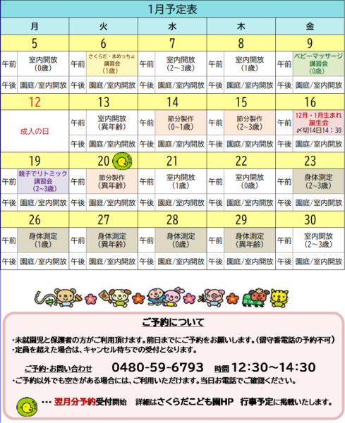親子で楽しめる活動を企画しています。詳細は各月の予定表をご覧ください。